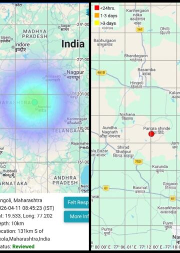 भुकंपाचे सौम्य धक्के, 4.7 रिस्टर स्केल – नांदेड जिल्ह्यात केंद्रबिंदु, नागरिकांनी सतर्क राहण्याचे आवाहन