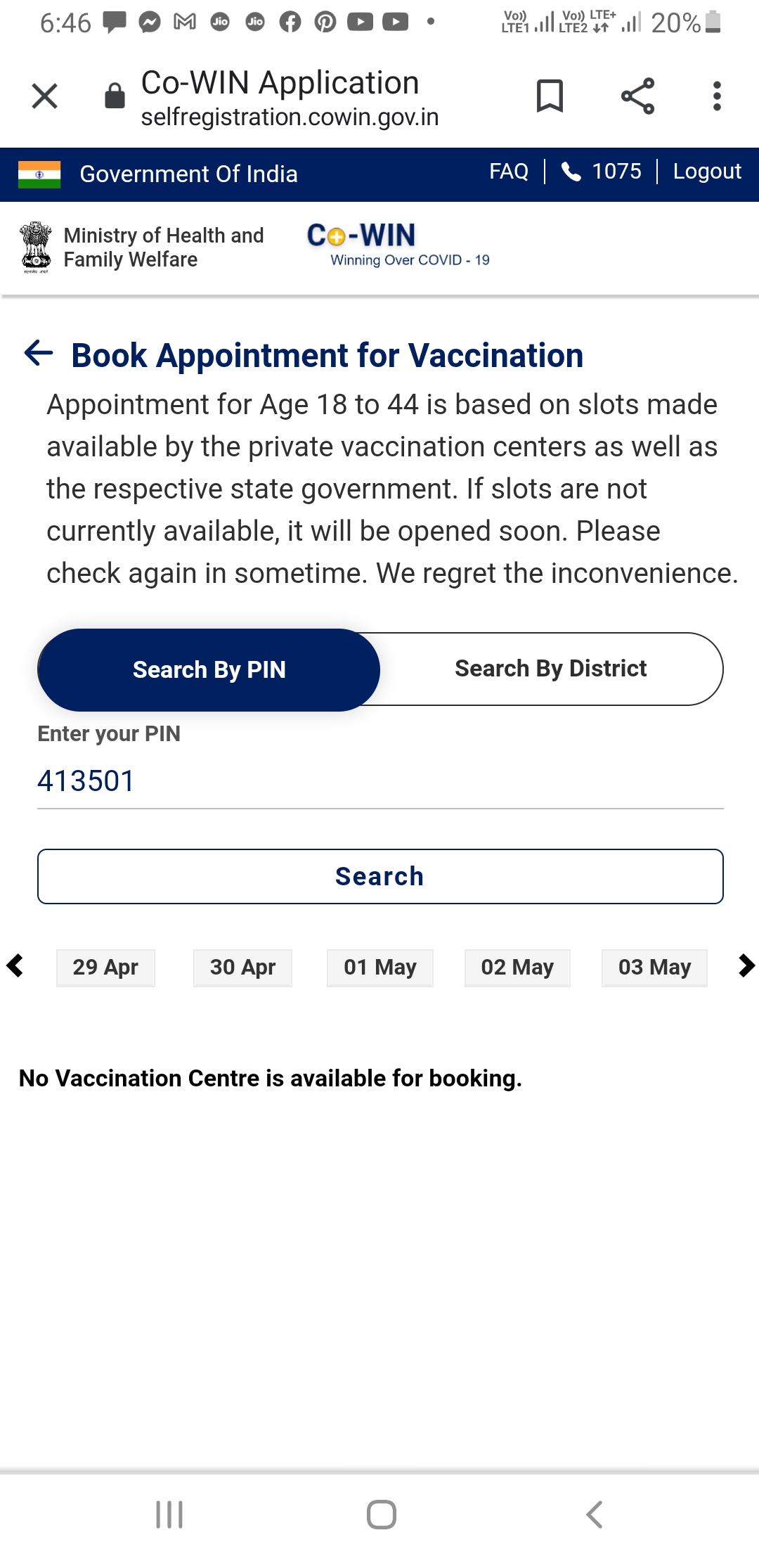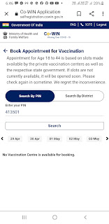 1 मे नंतरची नाव नोंदणी मात्र एकही केंद्र दाखवत नाही