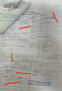 उस्मानाबाद तालुक्यातील बावी येथील अंगद कोंडीबा जाधव या ५५ वर्षीय रुग्णाला ११ एप्रिल २०२१ रोजी सायंकाळी साडे सात वाजता जिल्हा शासकीय रुग्णालयात उपचारासाठी दाखल करण्यात आले त्यावेळी त्याना कोरोना झाल्याचे निष्पन्न झाले तर एचआरसीटी मध्ये त्यांचा स्कोर २५ पैकी २३ आला त्यामुळे आयसीयूमध्ये उपचार करण्यात आले त्यानंतर आज १६ एप्रिल रोजी त्यांचे सकाळी निधन झाले. निधन झाल्यानंतर जिल्हा शासकीय रुग्णालयात १६ एप्रिल २०२१ रोजी सकाळी १०.०३ वाजता त्यांची ( मृतदेहाची ) रॅपिड अँटीजन तपासणी करण्यात आली त्यावेळी ती निगेटिव्ह आली असे दाखविण्यात आले व मृतदेह नातेवाईक यांना नेण्यास सांगण्यात आले त्यावेळी नातेवाइकानी अनेक खोचक प्रश्न विचारले नंतर पुन्हा मृतदेहाची सकाळी १०.३८ वाजता रॅपिड अँटिजन चाचणी करण्यात आली त्यावेळी ती अवघ्या अर्ध्या तासात पॉझिटिव्ह आली. या सर्व चाचणी याची नोंद रुग्णाच्या केस ( तपासणी ) पेपरवर करण्यात आली आहे. मृत्यूनंतर तपासणीत कोरोनाबाधीत रुग्ण सुरुवातीला निगेटिव्ह व नंतर पॉझिटिव्ह आल्याने मृत्यूचे आकडे लपवण्यासाठी तर ही उठाठेव नसेल ना हा प्रश्न समोर आला आहे.