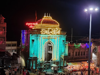 ‘आई साहेब’ व ‘आई राजा उदो उदो’ ची रोषणाई , भक्तांची पाहण्यास गर्दी