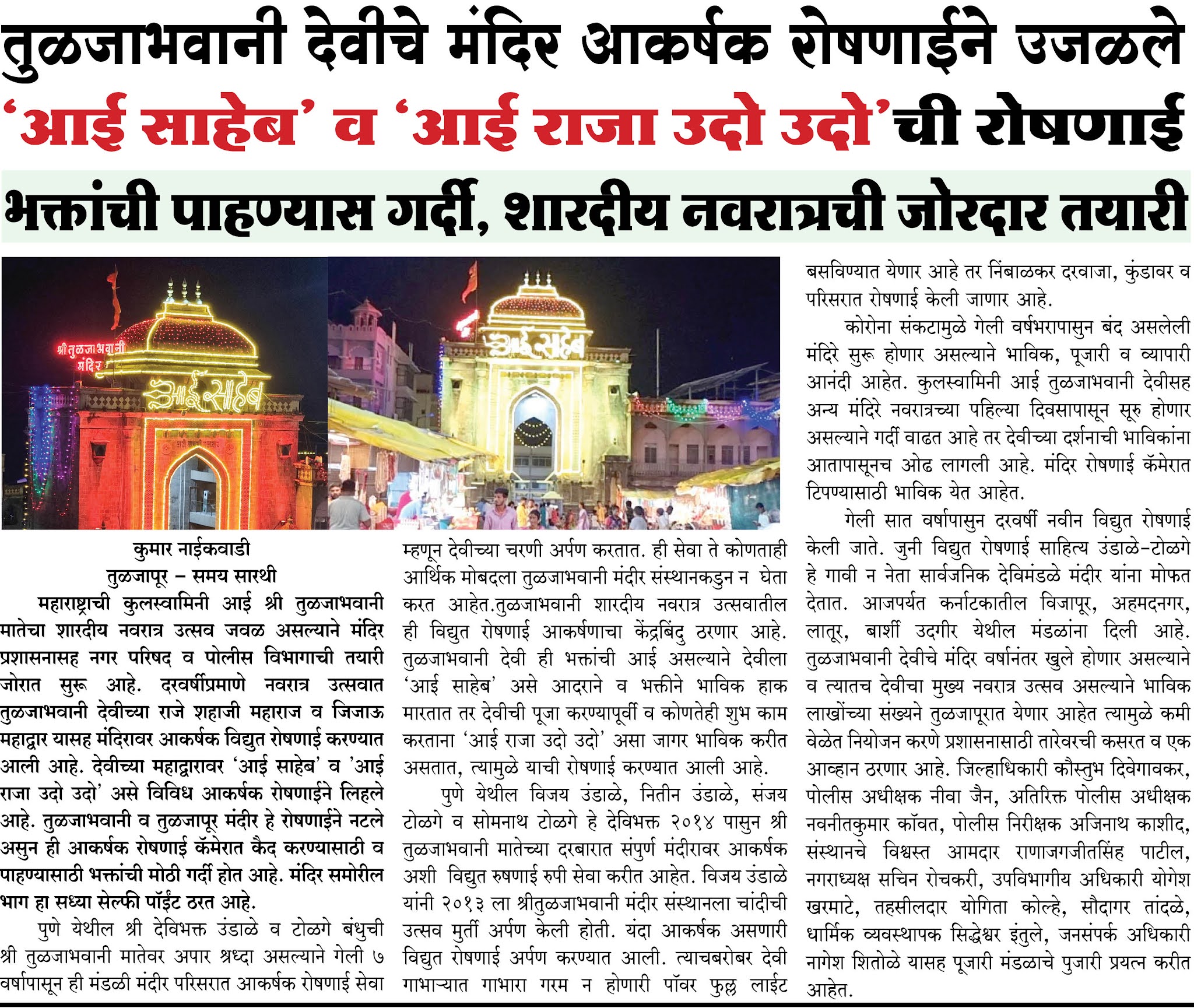 तुळजापूर – समय सारथी , कुमार नाईकवाडी