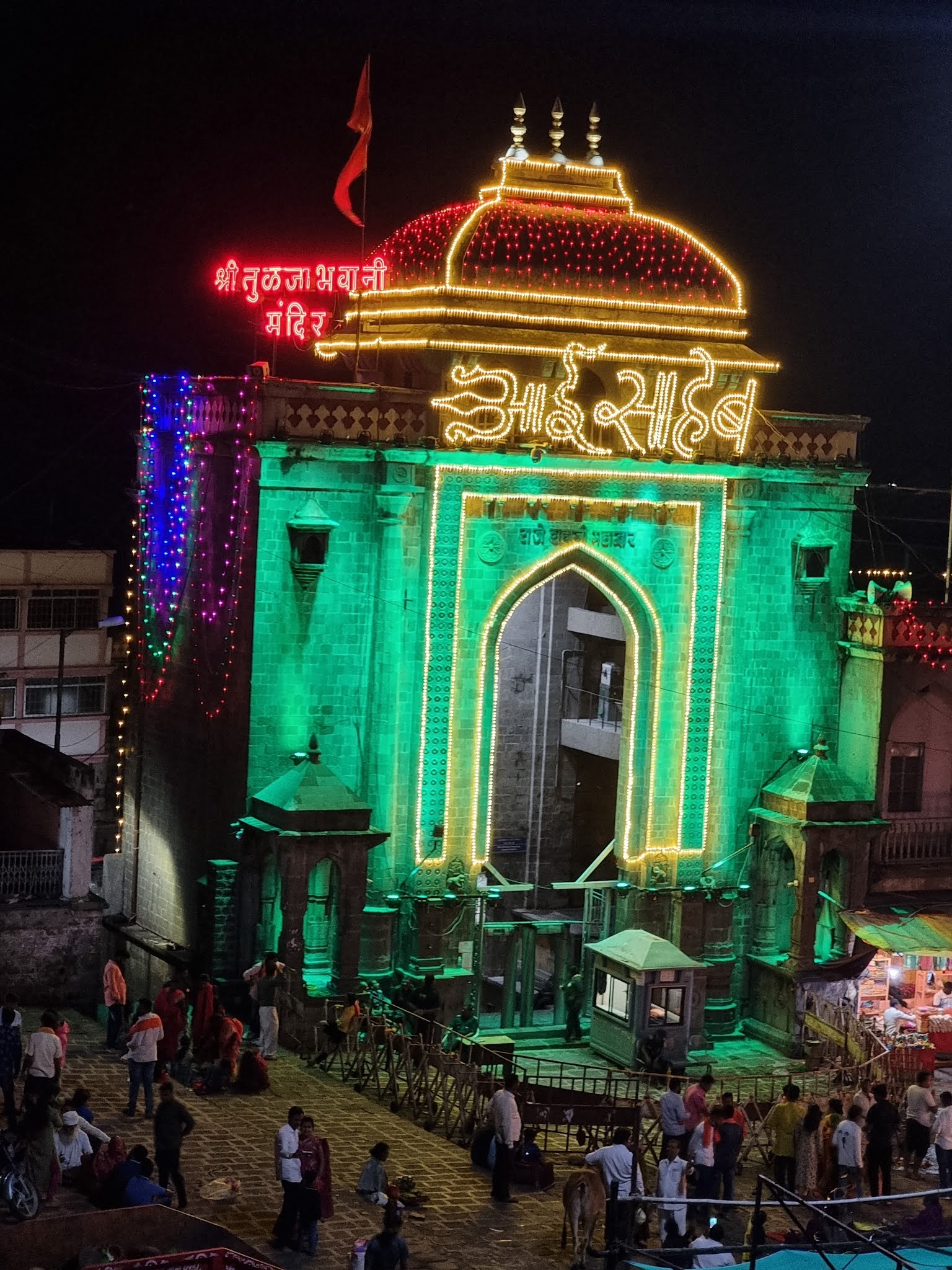 ‘आई साहेब’ व ‘आई राजा उदो उदो’ ची रोषणाई , भक्तांची पाहण्यास गर्दी