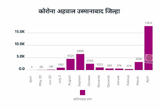 एप्रिल 2021 या महिन्यात कोरोनाने कहर करीत एका महिन्यात 17 हजार 813 जणांना बाधीत केले तर 327 पेक्षा अधिक रुग्णांचा बळी घेत अक्षरशः मृत्यूच तांडव घातले. आजवरच्या एकूण रुग्णांच्या तुलनेत एकट्या एप्रिल महिन्यात 46.45 टक्के रुग्ण सापडले. गेल्या वर्षी 2020 मध्ये ऑगस्ट ते ऑक्टोबर या 3 महिन्याच्या काळात पहिली लाट आली त्या काळात उस्मानाबाद जिल्ह्यात ऑगस्टमध्ये 4 हजार 524, सप्टेंबर 6 हजार 488 व ऑक्टोबर 2 हजार 554 असे 3 महिन्यात 13 हजार 566 कोरोना रुग्ण सापडले तर कोरोनाच्या दुसऱ्या लाटेत मार्च महिन्यात 3 हजार 246 रुग्ण व एप्रिल महिन्यात 17 हजार 813 असे विक्रमी रुग्ण सापडले. म्हणजे एकट्या एप्रिल महिन्यात 131 पटीने अधिक रुग्ण सापडले तरी देखील प्रशासनाने योग्य नियोजन व मेहनत करीत मृत्यदर कमी ठेवला हे उपलब्ध आकडेवारी वरून समोर आले आहे.