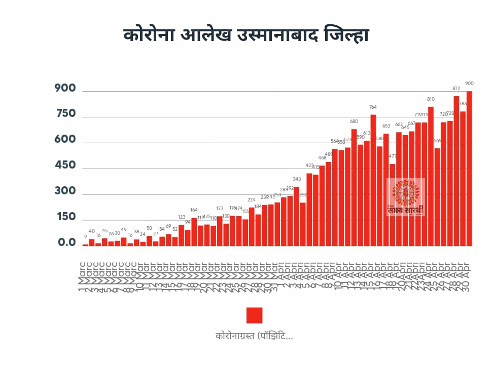 एप्रिल 2021 या महिन्यात कोरोनाने कहर करीत एका महिन्यात 17 हजार 813 जणांना बाधीत केले तर 327 पेक्षा अधिक रुग्णांचा बळी घेत अक्षरशः मृत्यूच तांडव घातले. आजवरच्या एकूण रुग्णांच्या तुलनेत एकट्या एप्रिल महिन्यात 46.45 टक्के रुग्ण सापडले. गेल्या वर्षी 2020 मध्ये ऑगस्ट ते ऑक्टोबर या 3 महिन्याच्या काळात पहिली लाट आली त्या काळात उस्मानाबाद जिल्ह्यात ऑगस्टमध्ये 4 हजार 524, सप्टेंबर 6 हजार 488 व ऑक्टोबर 2 हजार 554 असे 3 महिन्यात 13 हजार 566 कोरोना रुग्ण सापडले तर कोरोनाच्या दुसऱ्या लाटेत मार्च महिन्यात 3 हजार 246 रुग्ण व एप्रिल महिन्यात 17 हजार 813 असे विक्रमी रुग्ण सापडले. म्हणजे एकट्या एप्रिल महिन्यात 131 पटीने अधिक रुग्ण सापडले तरी देखील प्रशासनाने योग्य नियोजन व मेहनत करीत मृत्यदर कमी ठेवला हे उपलब्ध आकडेवारी वरून समोर आले आहे.