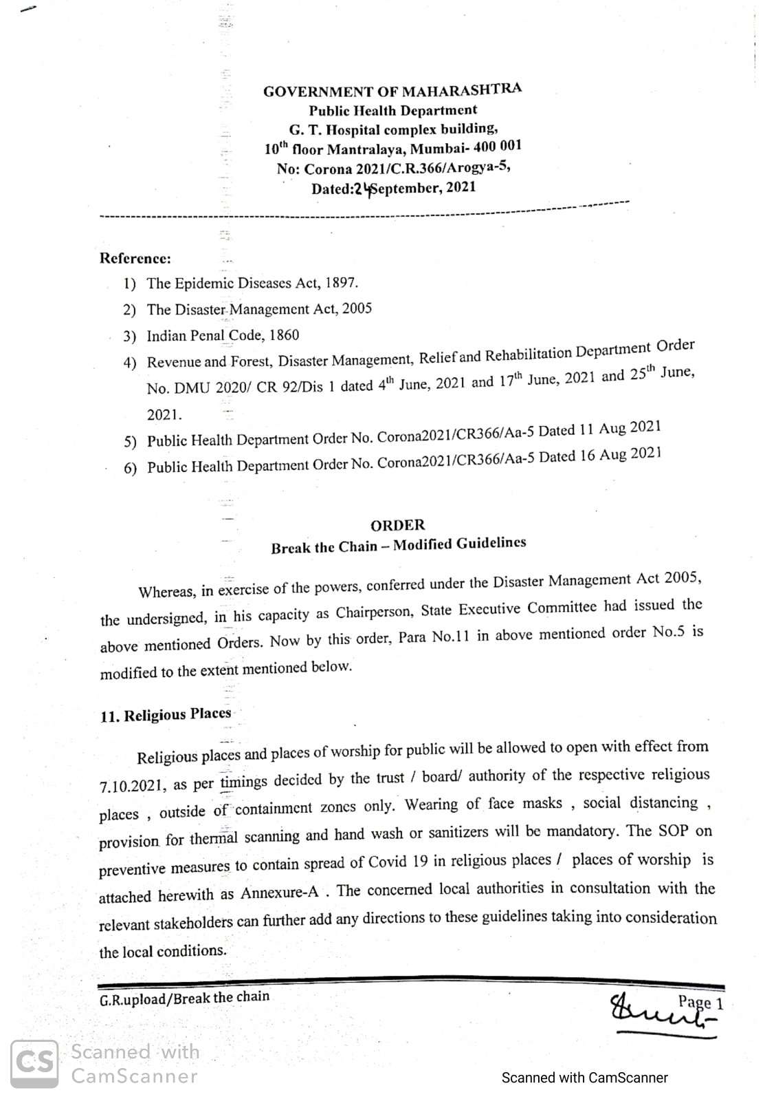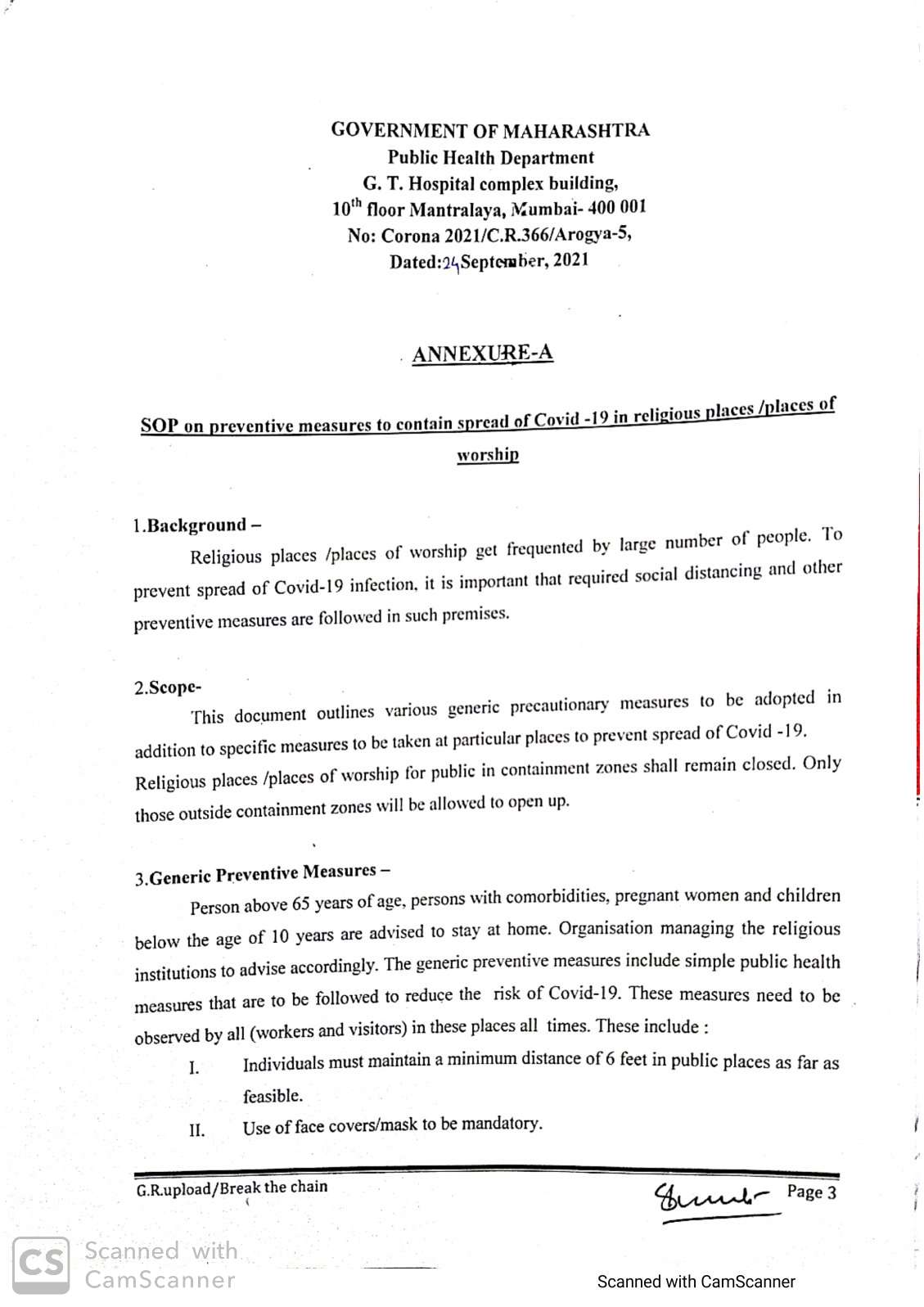 धार्मिक स्थळे भक्तांसाठी खुली केली असली तरी त्याठिकाणी आरोग्याच्या नियमांचे पालन झालेच पाहिजे. चेहऱ्यावर मास्क, सुरक्षित अंतर, जंतुनाशकाचा वापर हा झालाच पाहिजे.धार्मिक स्थळांच्या व्यवस्थापन समितीची यामध्ये मोठी जबाबदारी आहे हे विसरू नये.
