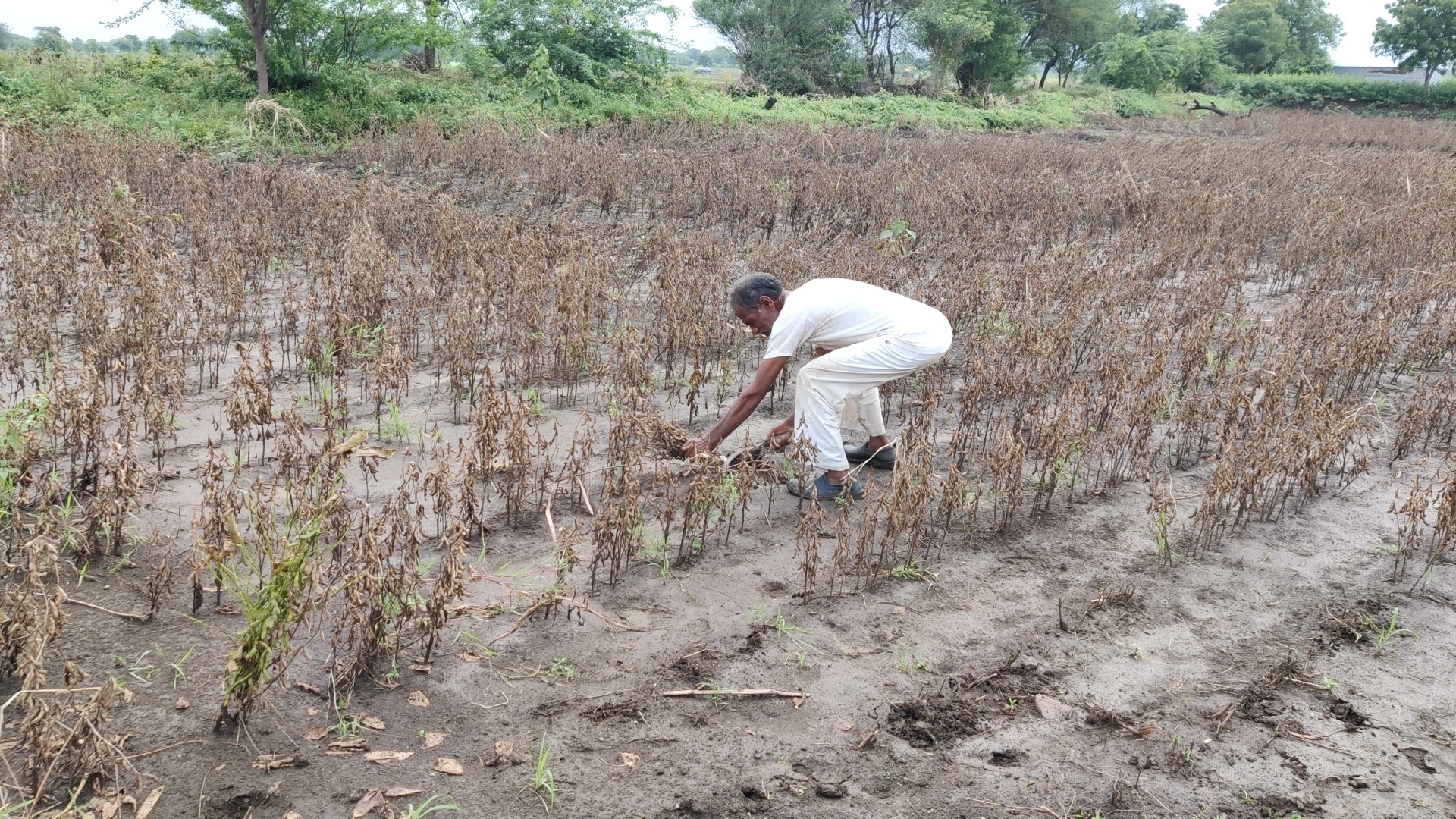 दाऊतपूर येथील शेतकऱ्यांचा सरकारला संतप्त सवाल – सोयाबीन पाण्यात कुजून दुर्गंधी