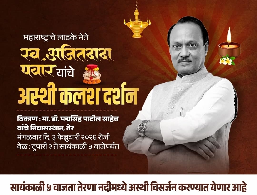 राज्याचे उपमुख्यमंत्री अजित पवार यांचे विमान अपघातात दुर्दैवी मुत्यू झाल्यानंतर त्यांच्यावर बारामती येथे अंत्यसंस्कार करण्यात आले. अजित पवार हे डॉ पद्मसिंह पाटील यांच्या बहीण सुनेत्रा पवार यांचे पती असुन तेर, धाराशिवचे जावई आहेत. अजित पवार यांच्या अस्थी तेर येथील डॉ पद्मसिंह पाटील यांच्या निवासस्थानी दर्शनासाठी 3 फेब्रुवारी रोजी दुपारी 2 ते सायंकाळी 5 या वेळेत ठेवण्यात येणार असुन त्यानंतर सायंकाळी 5 वाजता तेरणा नदीत विसर्जित करण्यात येणार आहेत. आमदार राणाजगजीतसिंह पाटील, अर्चना पाटील, मल्हार पाटील या पाटील कुटुंबातील सदस्य यावेळी असणार आहेत.