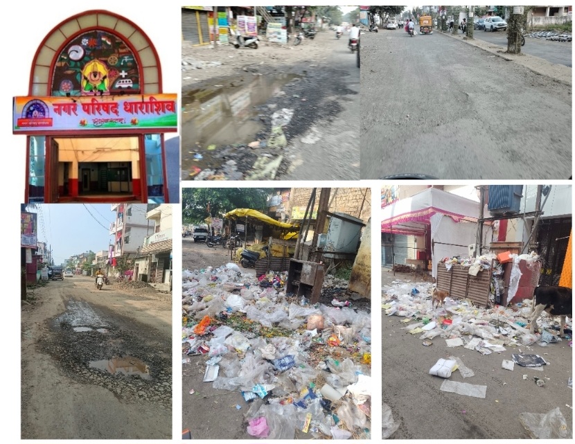 रस्ते, कचरा कामासह अन्य ठेकदारीतील दलाली, राजकीय कुरघोडी व स्वार्थी राजकारणाने धाराशिव शहराची अक्षरशः वाट लावली असुन रस्त्यांचे हाल तर जागोजागी कचऱ्याचे ढीग साचले आहेत. रस्ते, कचरा, पाणी व रस्त्यावरील अंधार हे प्रश्न पाचवीला पुजले असुन रोजच्या अडचणीचे आहेत. ऐनं दिवाळीत रस्ते, वीज व कचरा अस्वछतेच्या समस्याने नागरिक त्रस्त झाले आहेत. नगर परिषद निवडणुका आल्याने काही जन वेगवेगळ्या माध्यमातून सामाजिक प्रश्नांची जाणीव व चिंता असल्याचा दिखावा करीत आहेत.
