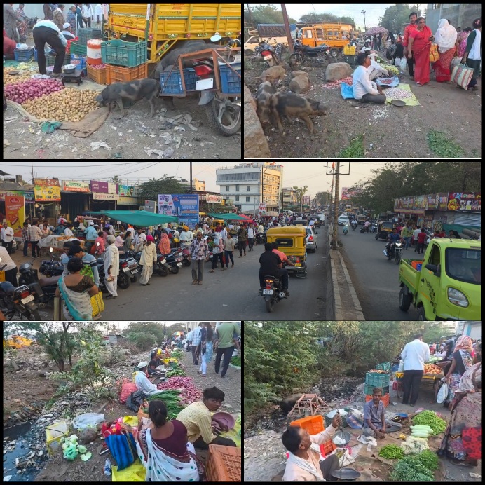 सांडपाणी, घाण ज्या नाल्यात जाते तिथे विक्रेते मिळेल ती जागा धरतात व भाजी पाला विक्री करतात, अनेक वेळा डुक्कर व इतर प्राणी तिथे असतात. काही ठिकाणी तर रस्त्यावर विक्रीसाठी मांडलेल्या भाजी, फळावर डुक्कर व इतर प्राणी ताव मारत ते खातात व तोच भाजी फळे लोकांना विकली जात असल्याचे व्हिडिओमध्ये कैद झाले आहे. इथले विदारक दृश्य पाहिले तर भाजी फळे खाऊ वाटणार नाहीत मात्र पर्याय नसल्याने धाराशिवकर ती घेतात. हे असेच सुरु राहिले तर आजाराचे प्रमाण वाढू शकते, आठवडी बाजारात सुविधा मिळणे आवश्यक आहे.