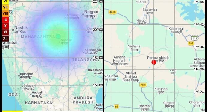 नांदेड जिल्ह्यातील नांदेड शहर व ग्रामीण भाग, अर्धापूर, हदगाव, हिमायतनगर या तालुक्यातील काही गावांमध्ये 11 एप्रिल 2026 रोजी सकाळी 8.45 मिनिटांनी भूगर्भातून आवाज येऊन जमीन हादरली असल्याची माहिती ग्रामस्थांनी प्रशासनाला दिली होती. त्यानुसार राष्ट्रीय भूकंप विज्ञान केंद्राच्या संकेतस्थळावर तपासले असता धक्क्याची नोंद झाली असून या धक्क्याची तीव्रता रिश्टर स्केलवर 4.7 एवढी नोंदविण्यात आली असून, याचा केंद्रबिंदु हिंगोली जिल्ह्यातील वसमत तालुक्यातील शिरली गावाच्या उत्तरेला असल्याचे कळते. सदर धक्का हा सौम्य प्रकारचा आहे . तसेच या धक्क्यामुळे कुठलीही जीवित व वित्त हानी झाली नसल्याबाबत संबंधित तहसीलदार यांनी जिल्हा आपत्कालीन कार्यकेंद्रास कळविले आहे.
