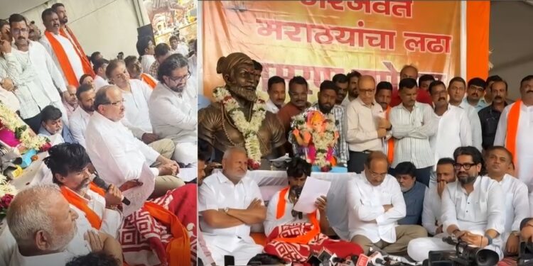 राधाकृष्ण विखे पाटील. यांच्या नेतृत्वाखाली मंत्री, आमदार यांचे शिष्टमंडळ मनोज जरांगे पाटील यांना भेटले व सविस्तर चर्चा करून जरांगे यांची मसुद्यावर संमती घेतली त्यानंतर राज्य सरकार 3 जीआर काढणार आहे. जीआर निघाल्यावर मराठे रात्री 9 पर्यंत आनंद उत्सव साजरा करून मुंबई रिकामी करून गावी परत जातील असे म्हणाले.