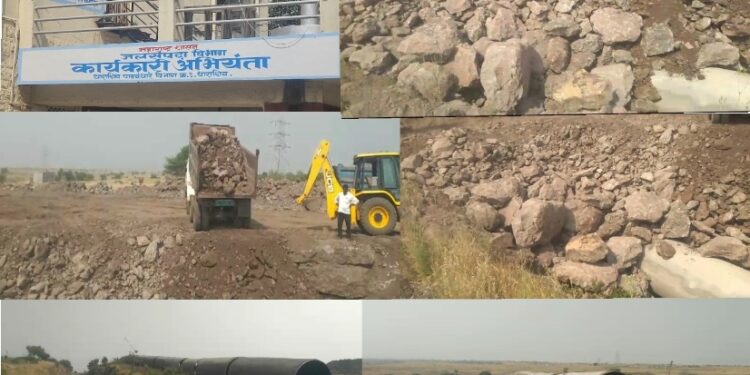 कृष्णा मराठवाडा प्रकल्पातील पांगरधरवाडी येथे बोगस काम – सुट्टीच्या दिवशी टाकले मोठंमोठाले दगड