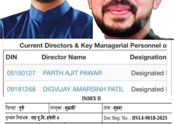 राज्याचे उपमुख्यमंत्री अजित पवार यांचे पुत्र पार्थ पवार यांची अमेडिया यां कंपनीचा जमीन घोटाळा बाहेर आला आहे. पार्थ पवार यांचे पार्टनर दिग्विजय पाटील हे राज्यसभा खासदार सुनेत्रा पवार यांचे भाचे असुन ते सुनेत्रा यांचे बंधु अमरसिंह पाटील यांचे पुत्र आहेत. दिग्विजय हे त्यात पार्टनर आहेत.