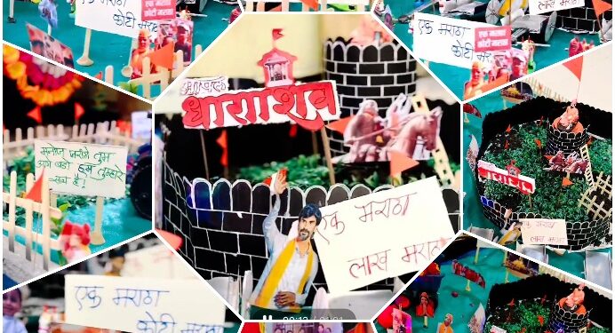 पाठिंबा – गौरी देखाव्यात मराठा आरक्षणाचा आवाज , मनोज जरांगे पाटील यांना पाठिंबा, आंदोलनातुन जागृती