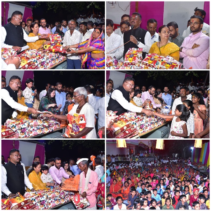 पालकमंत्री प्रतापराव सरनाईक सहकुटुंब साडेसांगवी गावात, फटाके, फराळ, शैक्षणिक साहित्य भेट