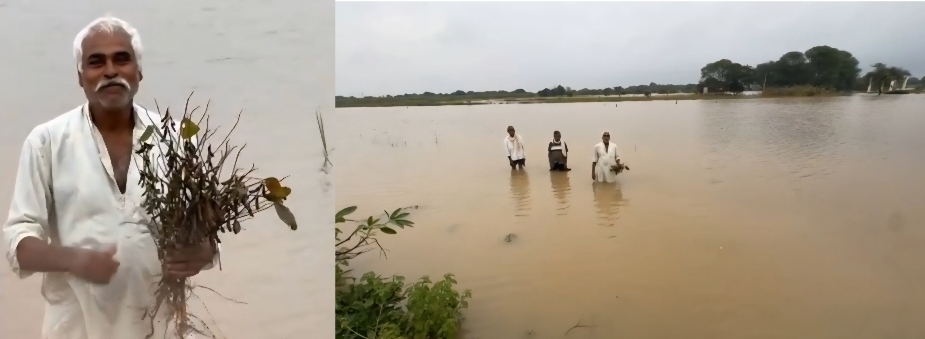 दाऊतपुरला आम्ही आहोत आणि गावाच्या थोड बाहेर तुम्हाला हे तळ वाटत असेल पण ते तळे नसुन शेत आहे त्यात सोयाबीन आहे, शेतकरी यांनी हे सोयाबीन काढून आमदार राणाजागजीसिंह पाटील यांना दाखवले आहे. त्यावेळी शेतकरी यांनी सांगितले की, हे सोयाबिन नासुन गेले आहे. यावरून लक्षात येते की सोयाबीनची काय स्तिथी असेल. ज्या शेतकऱ्याचे हे शेत आहे त्यांनी पीक विमा भरलेला नाही, दुर्दैवाने 30 टक्के शेतकरी यांनी पीक विमा भरला नाही, त्यांचं काय करायचं ते पाहू असे आश्वासन दिले. आमदार पाटील हे शेतकऱ्यांना आपुलकीने प्रश्न उत्तर विचारत त्यांचे दुःख, व्यथा जाणून घेत आधार देताना दिसत आहेत.
