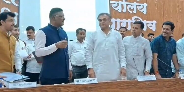 बैठक सुरु झाल्यानंतर स्वामी उशिरा सभागृहात दाखल झाले. त्यावर पालकमंत्र्यांनी त्यांचे कान टोचले. स्वामी यांना वेळेवर येण्याचं पुस्तकं द्या असे म्हटले. त्यामुळे उपस्थित अधिकारी, आमदार आणि पदाधिकारी यांच्यात एकच हशा पिकला, त्यावेळी आमदार कैलास पाटील यांनी ‘माझं पुस्तकं दिलं’ असे म्हणत नेहमी प्रमाणे सावरून घेतले.