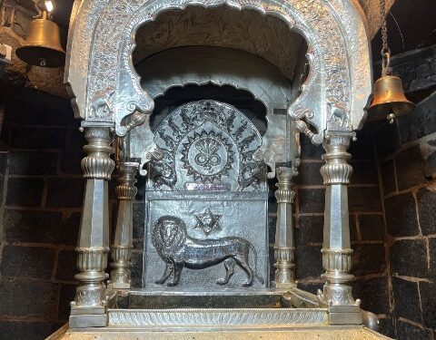 प्रभावळ – तुळजाभवानी देवीच्या मंदिरातील गाभाऱ्यात चांदीची नवी प्रभावळ व त्यावर नाव