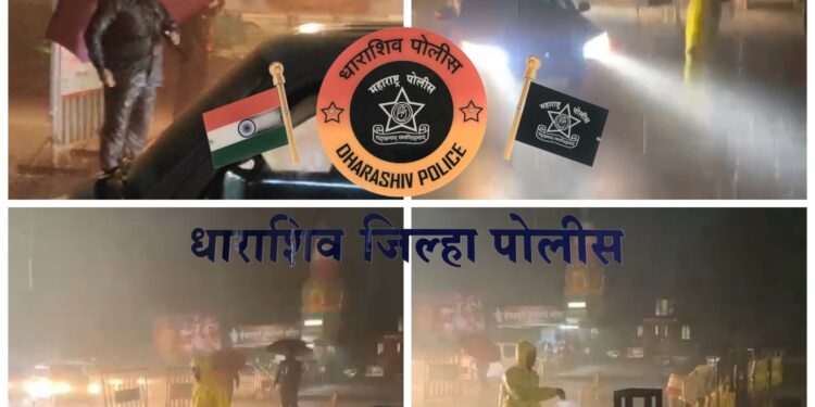 महाराष्ट्राची कुलस्वामिनी आई तुळजाभवानी मातेचा नवरात्र उत्सव सध्या सुरु असुन दर्शनासाठी लाखो भाविक तुळजापूर येथे येत आहेत. मुसळधार पावसात रात्री उशिरा धाराशिव पोलिस खडा पहारा देतानाचा एक व्हिडिओ सध्या व्हायरल होत आहे. पावसात देखील कर्तव्याला प्राधान्य देत असलेले हे पोलिस नवरात्रात जनतेची सेवा करीत आहेत. दिवस रात्र 24 तास बंदोबस्त असुन हातात छत्री घेऊन वाहतूक नियंत्रण करताना दिसत आहेत.