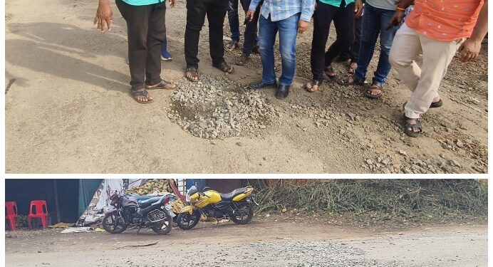 रस्त्यांच्या मलमपट्टीचा पंचनामा – पावसाने उघडकीस आणली ठेकेदाराच्या कामाची बोगसगिरी