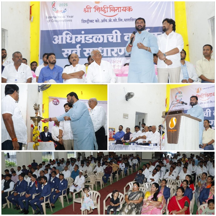 श्री सिद्धिविनायक मल्टीस्टेट को-ऑपरेटिव्ह क्रेडिट सोसायटीची 14 वी वार्षिक सर्वसाधारण सभा परिमल मंगल कार्यालयात उत्साहपूर्ण वातावरण पार पडली. या सभेत सभासदांना 10 टक्के लाभांश जाहीर करण्यात आला. 14 वर्षांच्या कालावधीत श्रीसिद्धिविनायक परिवारातील या संस्थेने 50 हजार सभासदांचा टप्पा गाठला आहे. 250 कोटींच्या ठेवी आणि 133 कोटींचे कर्जवाटप करत संस्थेने 350 कोटींचा व्यवसाय उभारला आहे. धाराशिव जिल्हा संस्थेचे जाळे विस्तारले असून, लोकांचा विश्वास हेच खरे भांडवल असल्याचे संस्थापक अध्यक्ष दत्ता भाऊ कुलकर्णी यांनी सांगितले. सामाजिक जबाबदारी म्हणुन पुरग्रस्तासाठी 1 लाखांची मदत जाहीर केली.