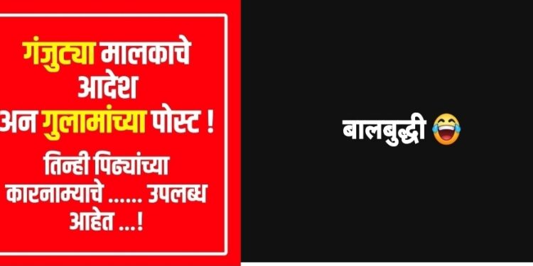 धाराशिवच्या राजकारणात शाब्दिक हल्ले प्रतिहल्ले सुरु आहेत. खासदार ओमराजे यांच्यावर टीका केल्यानंतर शिवसेनाचा गट सक्रीय झाला असुन ‘बालबुद्धी’ अशी उपमा देत गंजुट्या मालकाचे आदेश अन गुलामांच्या पोस्ट ! तिन्ही पिढ्यांच्या कारनाम्याचे …… उपलब्ध आहेत, असा सुचक इशारा दिला आहे. डॉ पद्मसिंह पाटील, राणाजगजीतसिंह पाटील व मल्हार पाटील या तिन्ही पिढ्यावर टीकास्त्र सोडले आहे. कारनामा काय आणि उपलब्ध काय हे मात्र गुलदस्त्यात ठेवले आहे