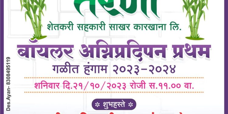 तेरणा शेतकरी सहकारी साखर कारखान्याचा बॉयलर पेटणार असुन प्रथम बॉयलर अग्नीप्रदिपन कार्यक्रम 21 ऑक्टोबर रोजी शनिवारी सकाळी 11 वाजता होणार आहे. पालकमंत्री तथा आरोग्यमंत्री डॉ तानाजीराव सावंत यांच्या भैरवनाथ समूहाने हा कारखाना भाडेतत्वावर घेतला आहे. चेअरमन प्रा शिवाजीराव सावंत यांच्या हस्ते हा कार्यक्रम संपन्न होणार आहे.