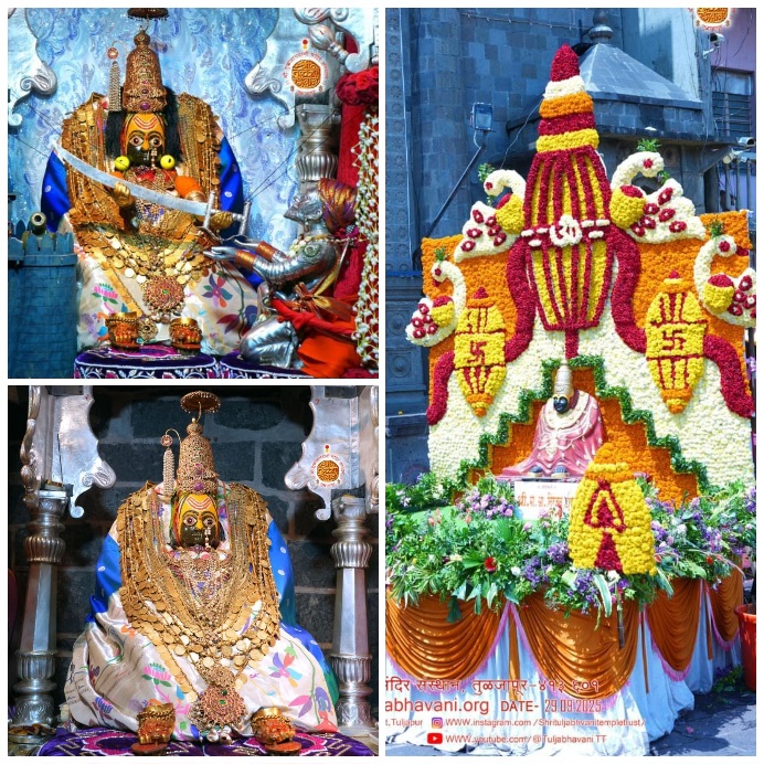 शारदीय नवरात्र महोत्सवात 29 सप्टेंबर रोजी सोमवारी, आठव्या माळेच्या दिवशी श्री तुळजाभवानी देवीजींची भवानी तलवार अलंकार महापूजा मोठ्या भक्तिभावाने मांडण्यात आली. सकाळपासूनच मंदिर व परिसरात भाविकांची गर्दी होती.